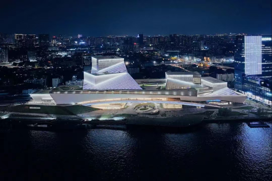 该艺术中心由中国工程院院士何镜堂团队领衔设计,建筑设计取“鹅潭写意,云山艺境”之韵味,表达“文化巨轮、鹅潭飞虹”的设计概念。夜色中,纯净通透的发光盒子通过腾跃有力的时代飞虹相连,铸就熠熠夺目的文化巨轮,乘风破浪,筑梦湾区,形成珠江夜空中一道璀璨靓丽的风景线。